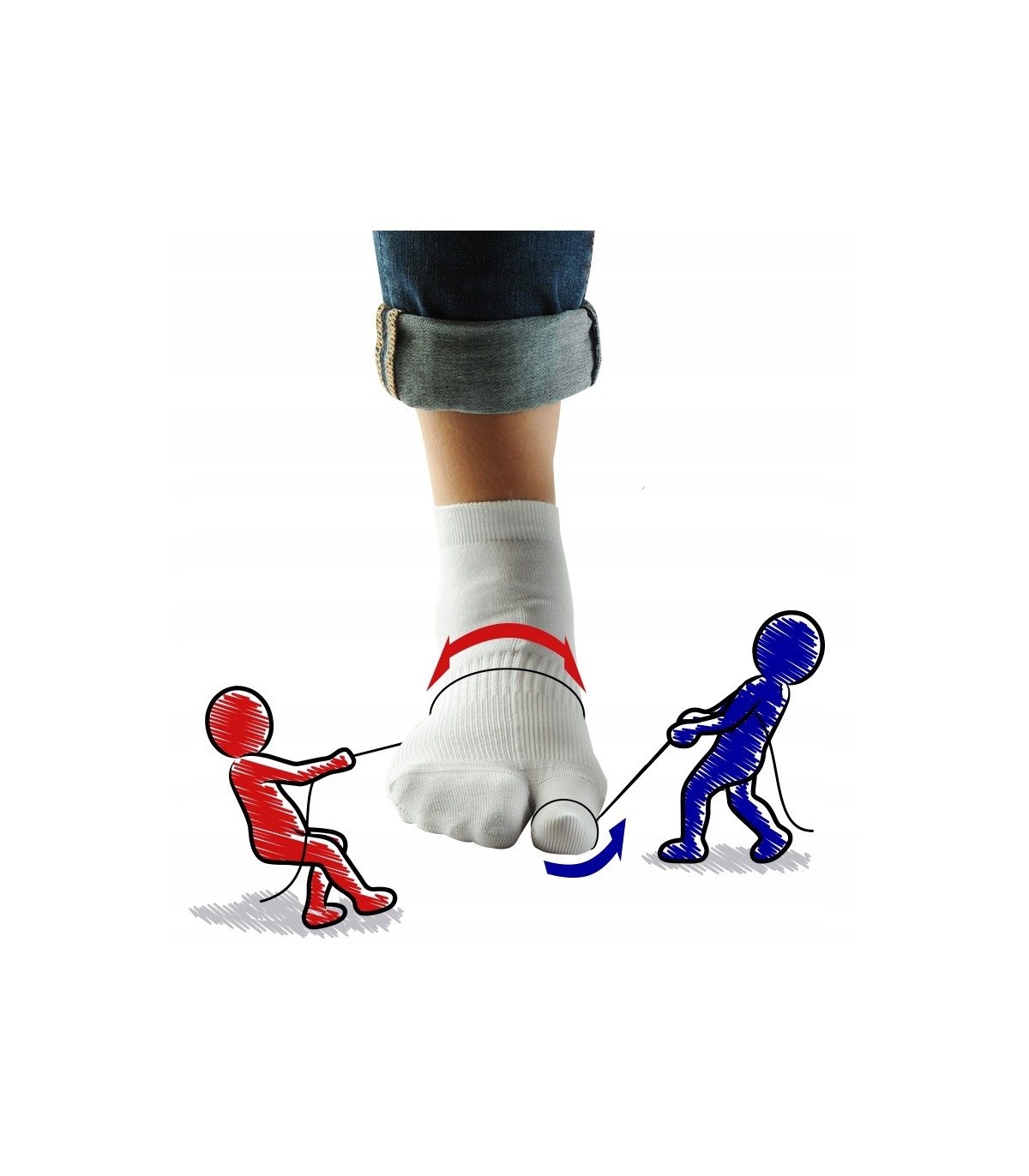 Konstrukcja skarpety została tak opracowana by w nieinwazyjny sposób, łagodnie korygować deformacje i utrzymywać tkanki i układ kostny stopy w jej anatomicznym położeniu.