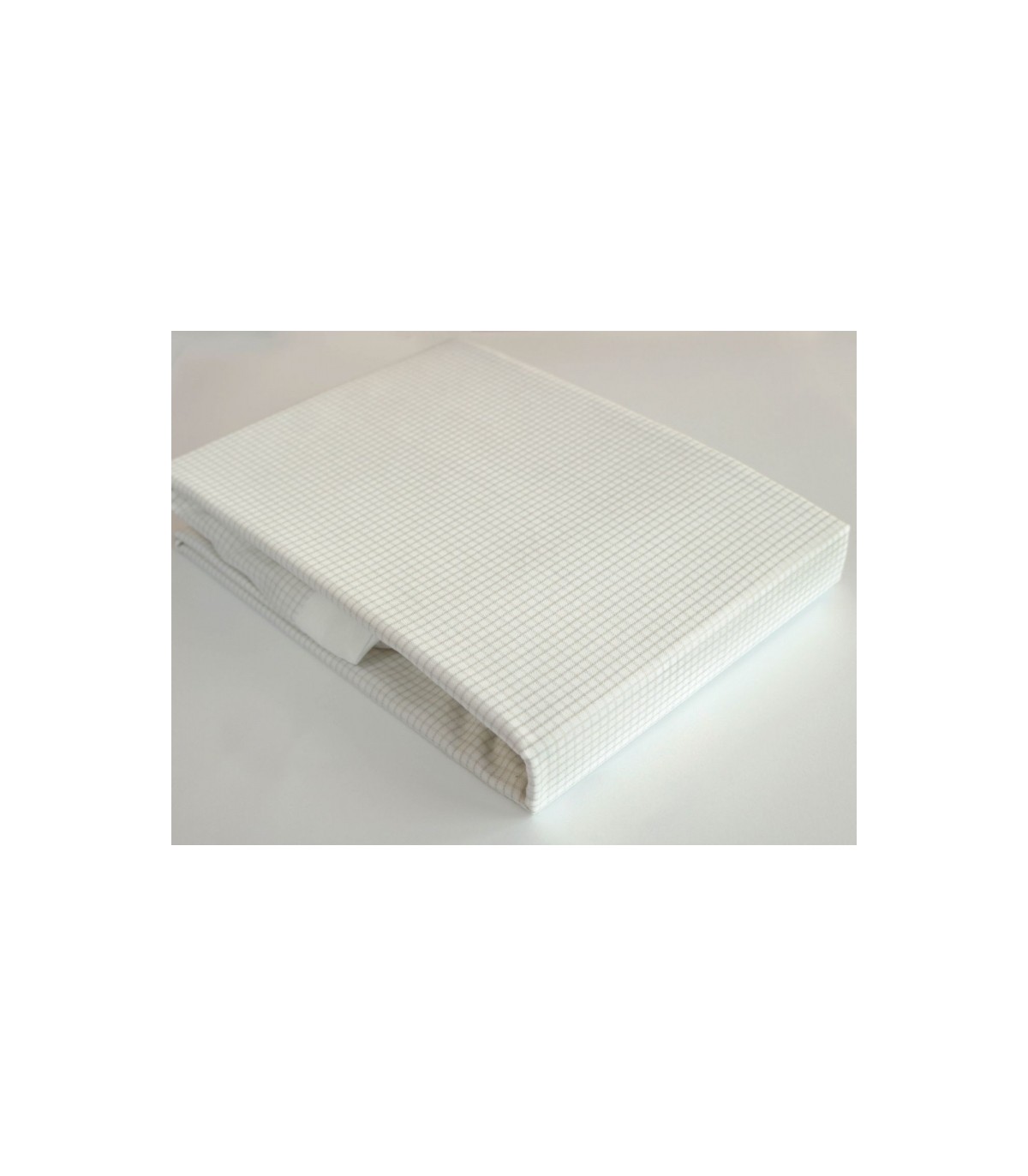 Prześcieradło ma kolor naturalny, śmietankowy (nie jest optycznie białe), ponieważ podczas produkcji nie zastosowano chemicznego wybielania surowej bawełny. W tkaninę wpleciono gęsto srebrne włókna, tworząc subtelny wzór drobnej, podwójnej kratki. Dzięki temu materiał jest miękki i przyjemny w dotyku, co ma kluczowe znaczenie dla komfortu snu.